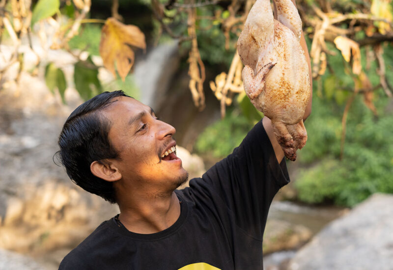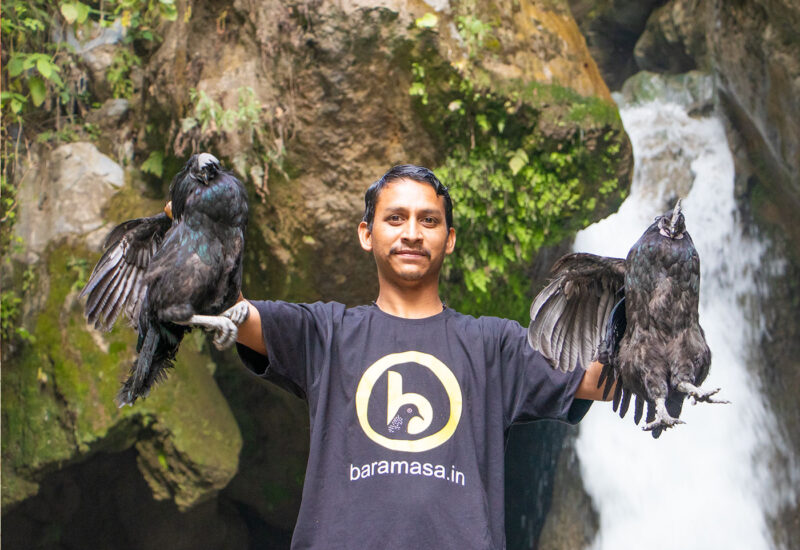 ‘भुला की रस्वै’ में बना पहाड़ी मसालों वाला कड़कनाथ मुर्ग़ा